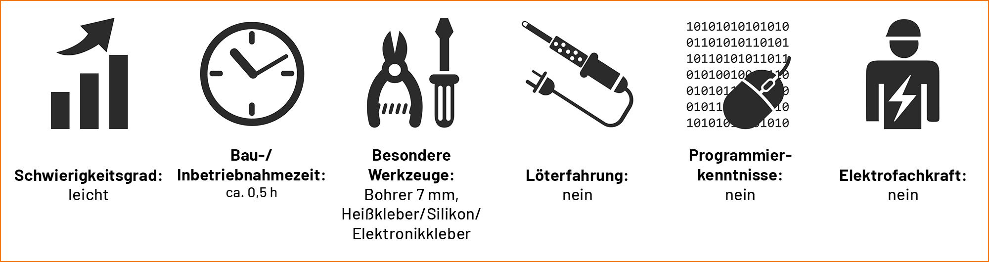 Für Anwendungen im Außenbereich wird empfohlen, ein UV- und witterungsbeständiges Filament wie ASA oder Polyamid zum Druck der Halterungen zu verwenden. Durch das Einsetzen des PET-Rohlings in eine Halterung gestaltet sich die Montage des Geräts sehr einfach. Durch Verschrauben oder Aufkleben auf verschiedenen Untergründen wie z. B. Möbeln, Türen oder Fenstern ergibt sich eine hohe Flexibilität bei der Wahl des Montageorts. Durch die Möglichkeit einer einsatzspezifischen Farbgebung des kompletten Geräts (Bild 8) ist auch eine verdeckte Verwendung in unterschiedlichen Umgebungen möglich.