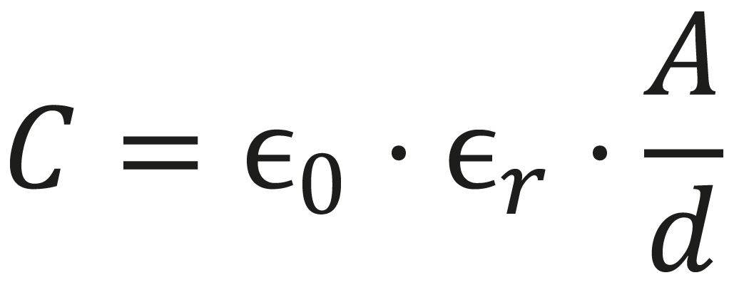 Wenn der Abstand zwischen den Kondensatorplatten mit d bezeichnet wird, ergibt sich bei konstanter Permittivität (ϵr), Fläche (A) und elektrischer Feldkonstante (ϵ0) der Leiterplatten eine proportionale Änderung der Kapazität mit dem Abstand d. Bei kleiner werdendem Abstand steigt die Kapazität und umgekehrt. Wenn der Sensor beschleunigt wird, verändert sich aufgrund der Massenträgheit seines beweglichen Teils der Abstand zwischen den beiden Platten. Diese Kapazitätsänderungen können elektrisch gemessen werden.