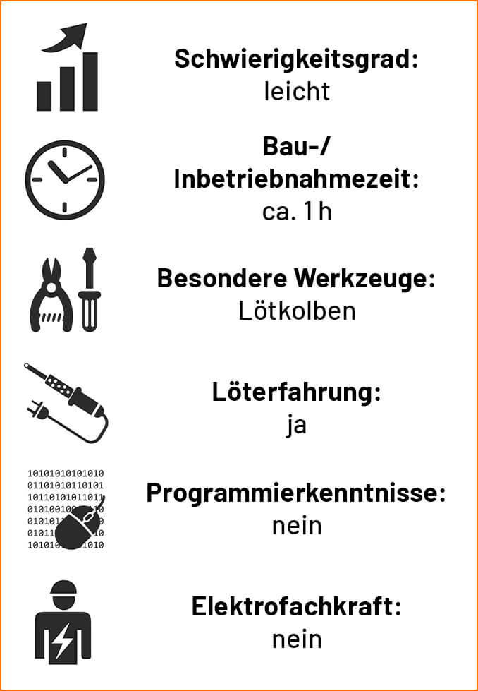 In Bild 7 sind alle im Bausatz enthaltenen Bauteile aufgezeigt. Die sehr kleinen SMD-Bauteile sind vorbestückt (siehe Platinenfoto Bild 8a und Bild 8b), sodass nur noch die gezeigten Bauteile bestückt und verlötet werden müssen. Die Modulplatine (Funkmodul) ist nicht im Bausatz enthalten und muss separat bestellt werden.